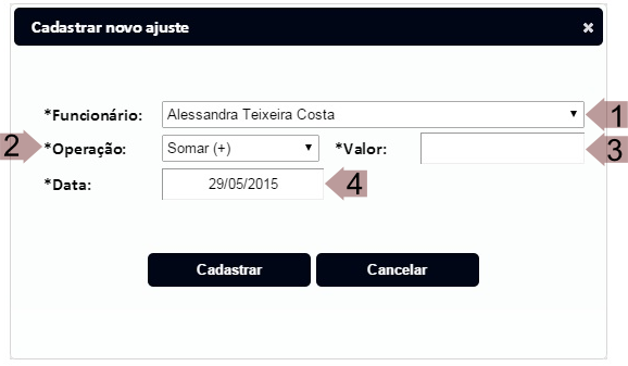 - Campo para selecionar o funcionário que terá o Ajuste cadastrado.
