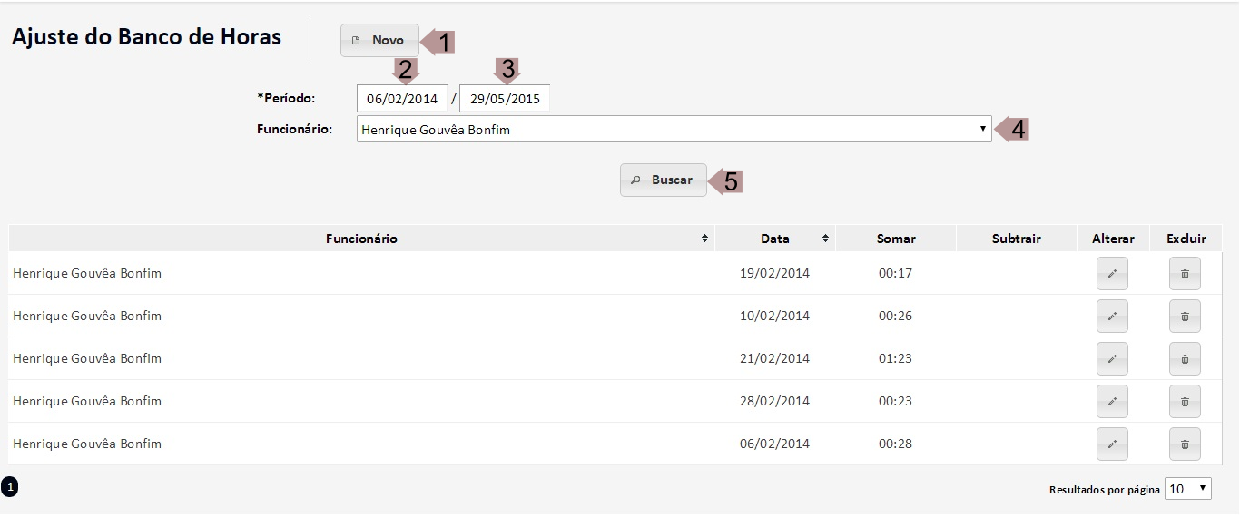- Botão para iniciar a busca de Ajustes, de acordo com período e funcionário selecionados.