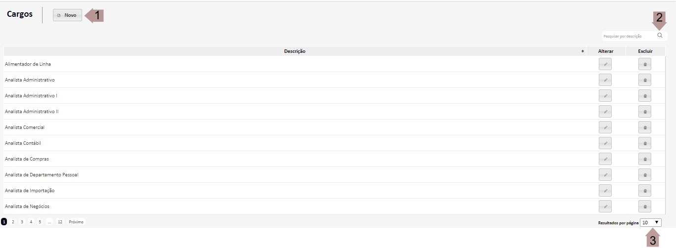- Define a quantidade de Cargos exibidos por página.
