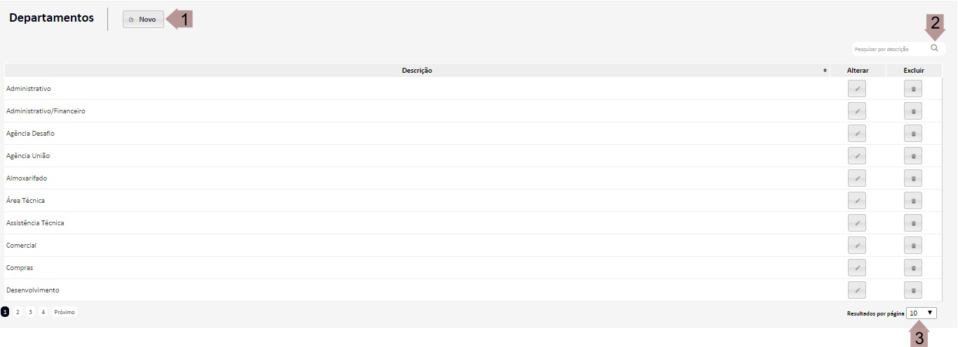 - Botão para iniciar a busca de Departamentos de acordo com a descrição informada.
