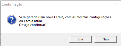 , o sistema libera a mensagem abaixo e, clicando em Sim, o sistema copia a configuração feita nos campos acima já citados para todas as escalas já registradas.