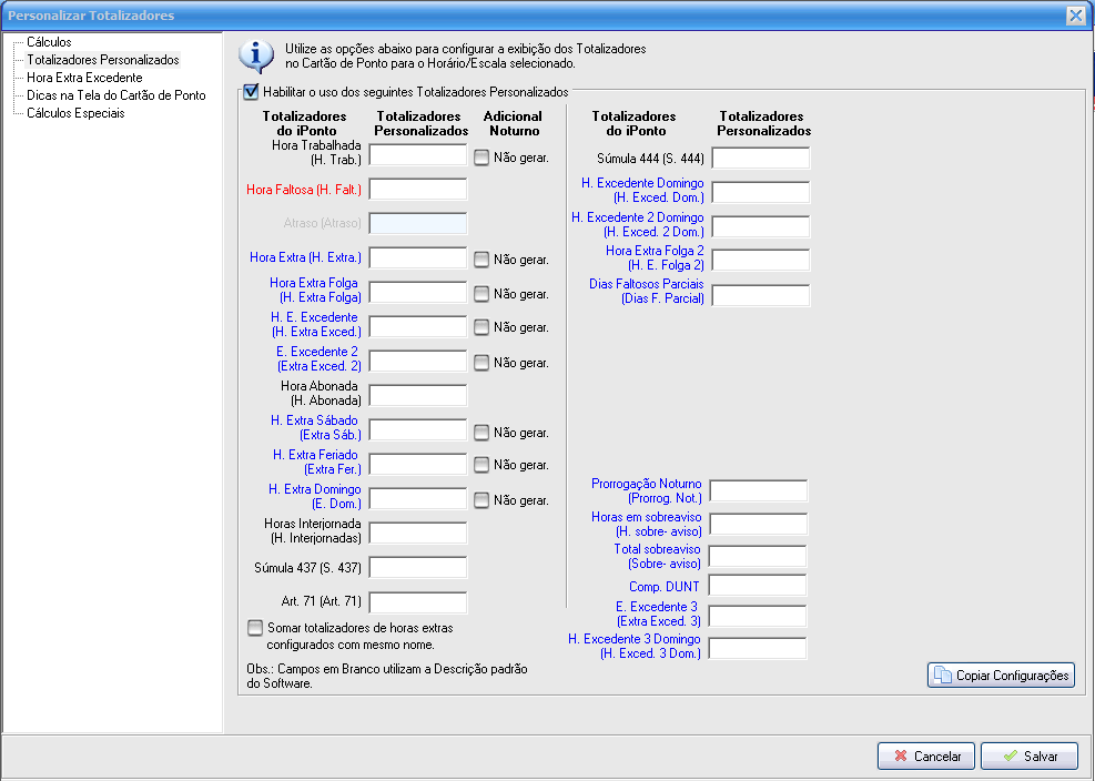 39 – No campo Hora Extra Excedente (H. Extra Exced.) o usuário poderá inserir um novo nome para designar a hora extra excedente da empresa.