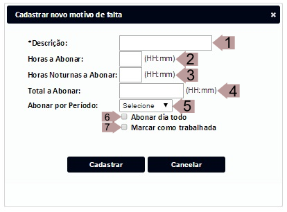 1. Campo para preenchimento do nome do Motivo de Falta.