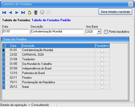 para salvar o feriado recém criado ou clique no botão Cancelar ![]()