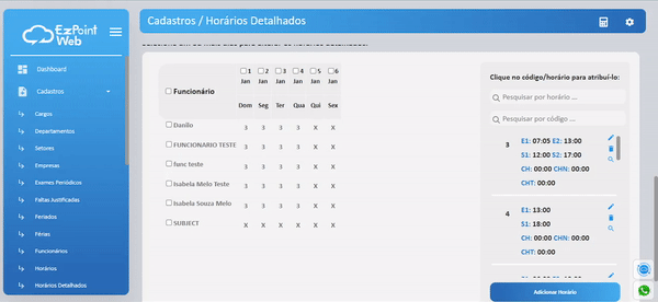 No sistema EzpointWeb é possível cadastrar um horário somente para um dia ou período para vários funcionários de uma vez, sem que você precise mexer no horário que já está no cadastro do funcionário.