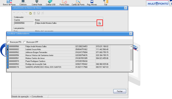 - Clique no ícone de uma lupa para buscar e selecionar o funcionário em questão