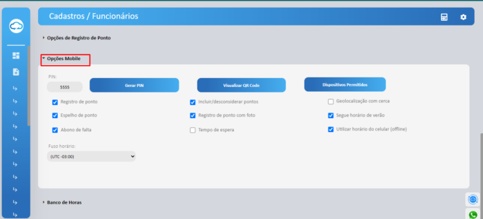 Registro de ponto – essa opção é o que define se o aplicativo está ativado ou não para o funcionário