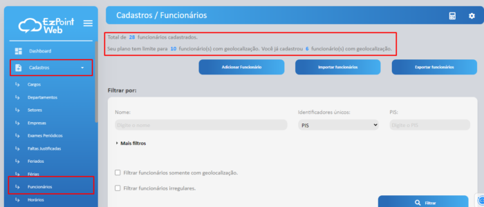 - Acesse o Menu e clique em Cadastros, e em seguida em Funcionários.