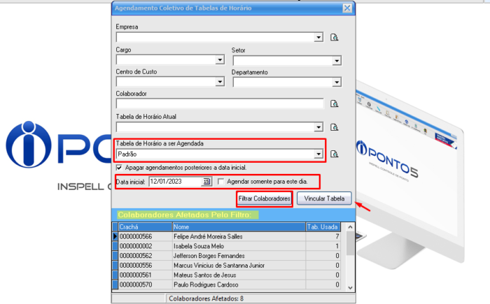 Como vincular um horário para vários colaboradores de uma só vez no Iponto?