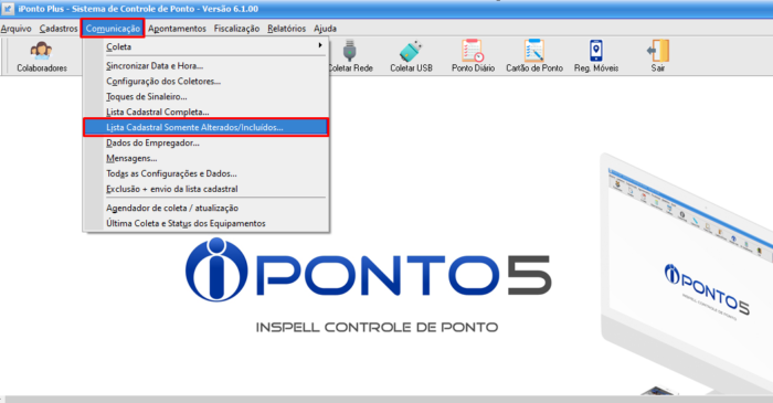 • Para enviar os funcionários que foram recentemente incluídos no sistema ou apenas os que tiveram alguma alteração que precisa ser atualizada no relógio de ponto, no menu principal clique em Comunicação e em seguida clique em Lista Cadastral Somente Alterados/Incluídos…