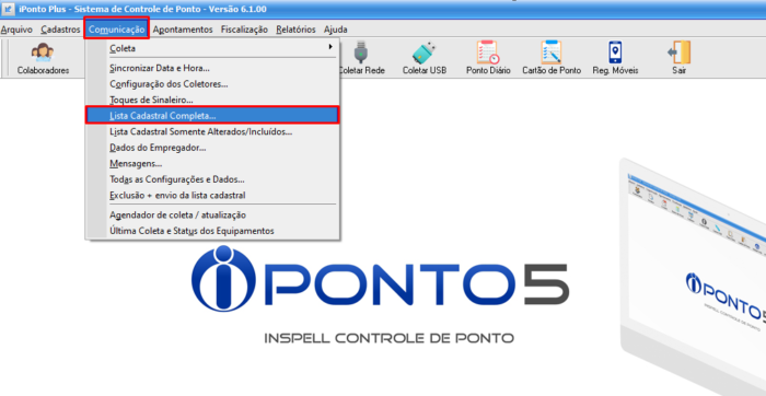 • Para enviar todos os funcionários do sistema clique em Comunicação e depois em Lista Cadastral Completa…