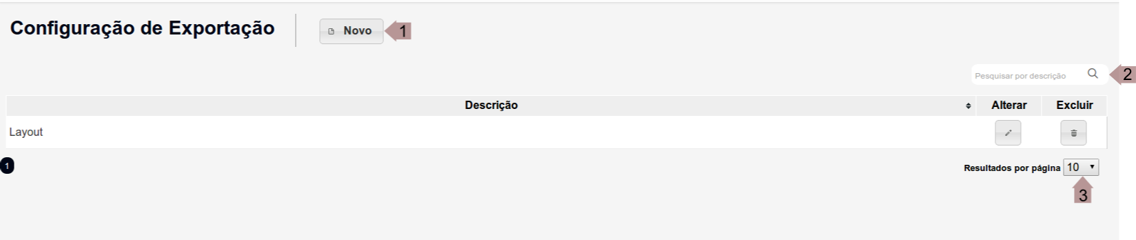 - Define a quantidade de Configurações de Exportação exibidos por página.