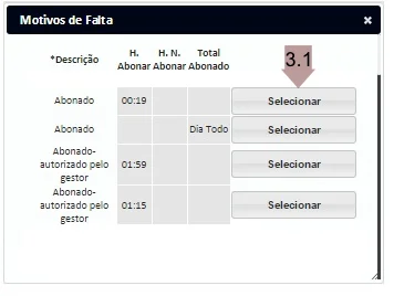 8.3. Botão para selecionar um Motivo de Falta pré-cadastrado. Ao clicar neste botão, a tela a seguir será exibida: