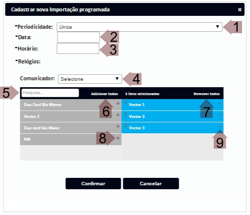 - Ícone para adicionar todos os relógios à listagem dos relógios que receberão a leitura de marcações.