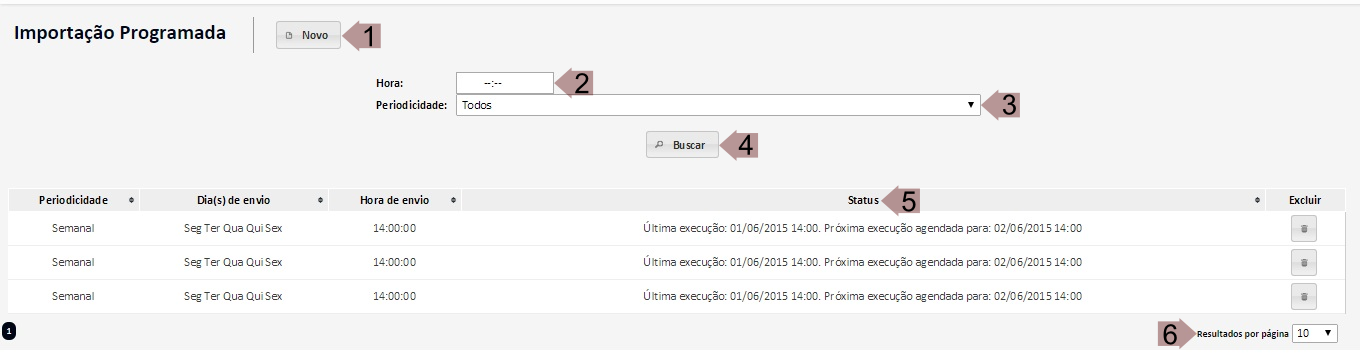 - Campo para seleção da periodicidade da Importação Programada a ser exibida.