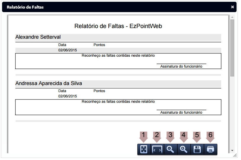 - Ícone para ajustar o relatório na tela, para que cada página seja exibida por completa sem a necessidade da barra de rolagem.