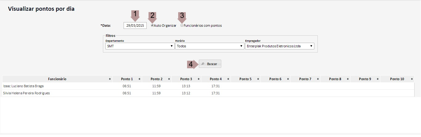 Relatório de Pontos por Dia gerado após clicar no botão Buscar.