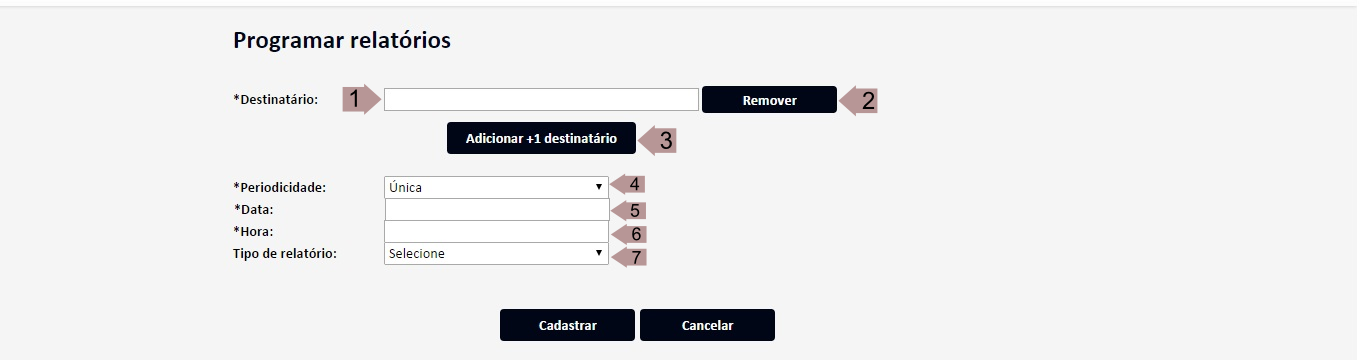 - Botão para remover o destinatário. Não é possível remover caso exista apenas um destinatário.
