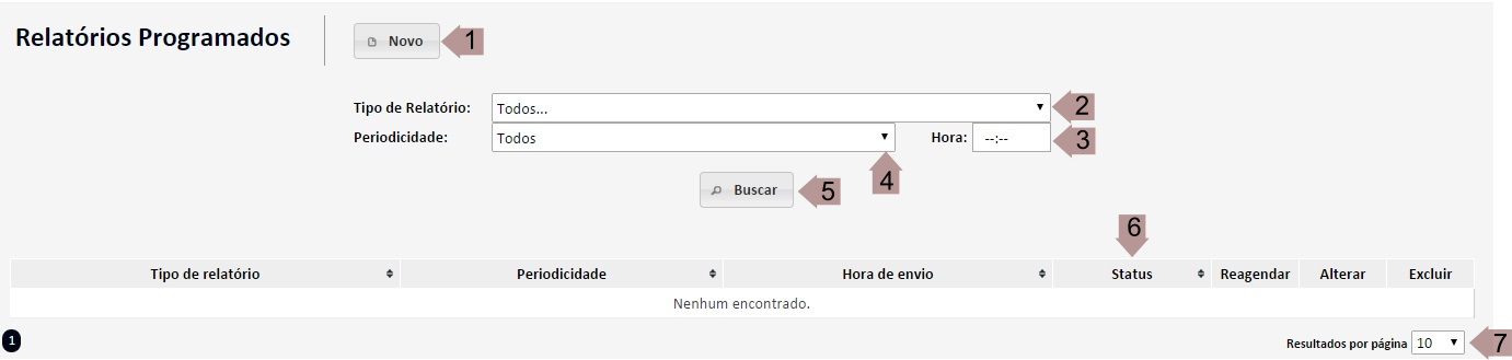 - Botão para iniciar a busca de Relatórios Programados, de acordo com os filtros selecionados anteriormente.